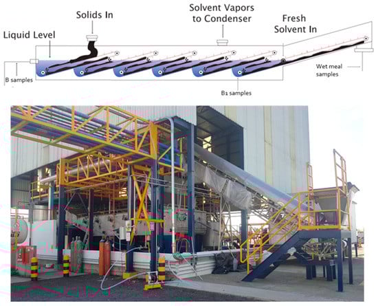 With such promising results, the possibility of using 2-MeOx in replacement of hexane for the extraction of lipids was investigated with industrial simulations and even on a larger scale by Sicaire et al. [], as discussed further in part 9. Indeed, hexane and 2-MeOx were tested on pressed rapeseed cake using a 6 L percolation extractor. The extraction was conducted by doing five washings of 30 min with fresh solvent. Residual oil content in the meal were 1.8% for hexane and 0.8% for 2-MeOx.