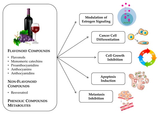 Ferraz da Costa, D.C.; Pereira Rangel, L.; Quarti, J.; Santos, R.A.; Silva, J.L.; Fialho, E. Bioactive Compounds and Metabolites from Grapes and Red Wine in Breast Cancer Chemoprevention and Therapy. Molecules 2020, 25, 3531. https://doi.org/10.3390/molecules25153531
