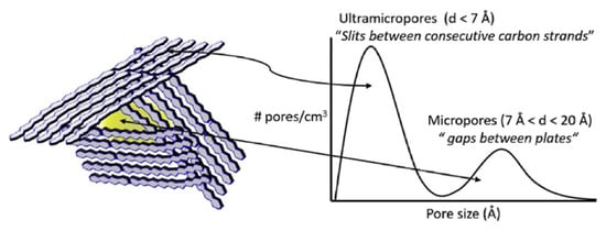 Turbostratic CMSM structure with idealized pore size distribution (adapted with permission from []).