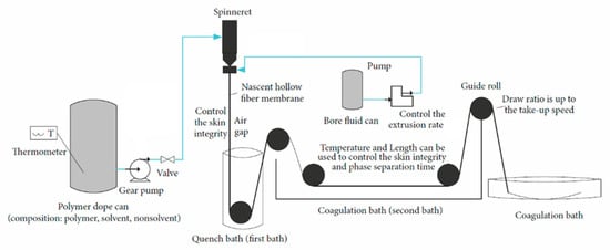 Scheme of the hollow fiber dry-wet spinning machine (reproduced with permission from []).