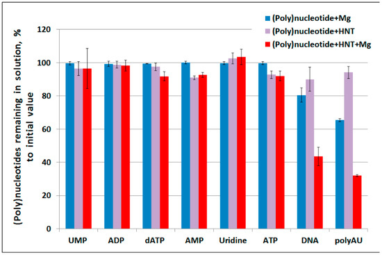 Binding of different (poly)nucleotides by halloysite nanotubes (HNT) with or without MgCl2 (10 mM).