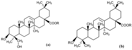 Molecular structures of sapogenins found in different varieties of quinoa: hederagenin (a) and oleanolic acid (b).