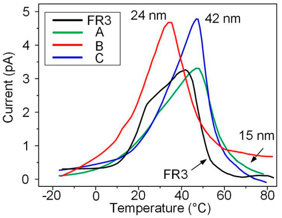 It can be seen from Table 1 that the trap depth of nanofluid impregnated paper is greater than that of FR3 nanofluid impregnated. This indicates that the combination of Fe3O4 and paper fibers can increase the trap depth. It also can be observed that the trap depth of nanofluid impregnated paper increases as the nanoparticles size increases.