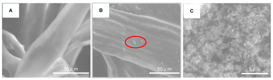 ESEM images of FR3 oil impregnated paper (A) nanofluids impregnated paper (B) and high magnification image of nanofluids impregnated paper marking area (C).
