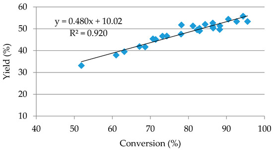 | Yield, conversion, and selectivity | 0.05 | 0.5 | 200 | 53.24 | 83.59 | 62.84 |