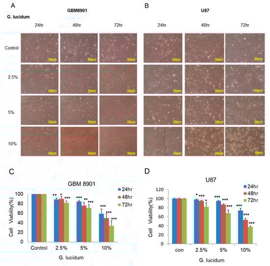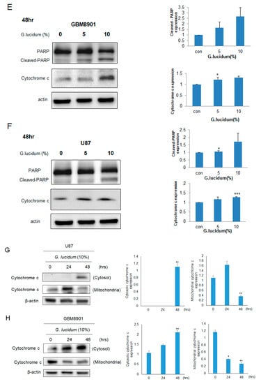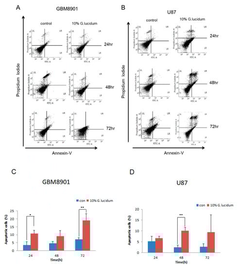 3.2. G. lucidum Extract Induces Apoptosis in Glioblastoma Cells