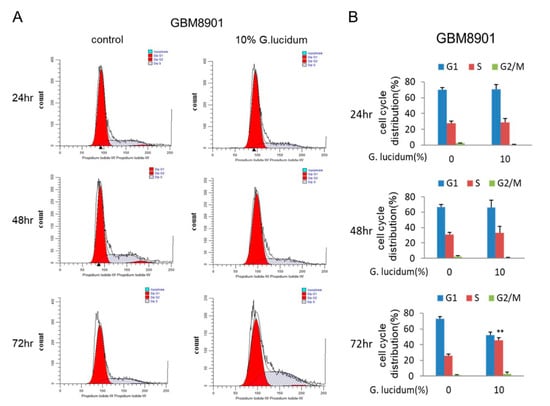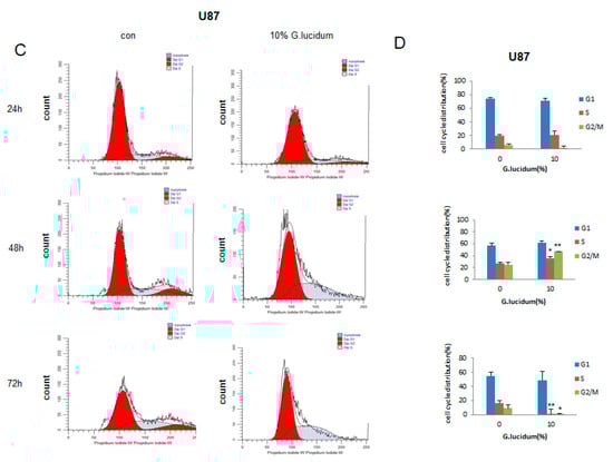 3.3. G. lucidum Extract Induces Glioblastoma Cells to Undergo Cell Cycle Arrest at S Phase