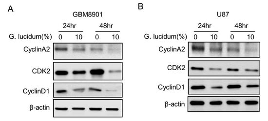 APA StyleCheng, A.-Y., Chien, Y.-C., Lee, H.-C., Hsieh, Y.-H., & Yu, Y.-L. (2020). Water-Extracted Ganoderma lucidum Induces Apoptosis and S-Phase Arrest via Cyclin-CDK2 Pathway in Glioblastoma Cells. Molecules, 25(16), 3585. https://doi.org/10.3390/molecules25163585