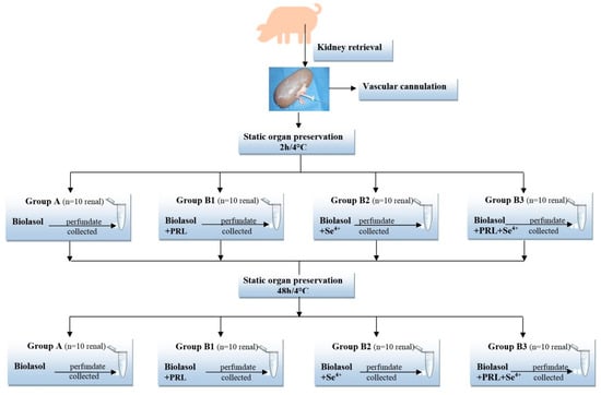 Group B3 (Biolasol® solution with Se4+ (1 µg/L) and PRL (0.1 µg/L); n = 10 kidney). The kidneys were rinsed and stored in modified Biolasol®.