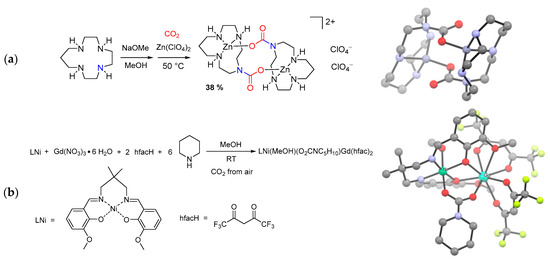 It is noteworthy that (2-ammoniumethyl)guanidinium dichloride reacts with Ag2CO3 directly in water, affording the corresponding guanidinium carbamate in high yield (Scheme 11b) [116]. This is a rare example of indirect generation of a carbamate (i.e., not using CO2) and where the superbase and the amine belong to the same molecule. An extensive network of H-bonding is present in the solid state structure, presumably contributing to the stabilization of the system (vs. bicarbonate formation).