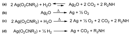 - Ahn, H.Y.; Cha, J.R.; Gong, M.S. Preparation of sintered silver nanosheets by coating technique using silver carbamate complex. Mater. Chem. Phys. 2015, 153, 390–395. [Google Scholar] [CrossRef]