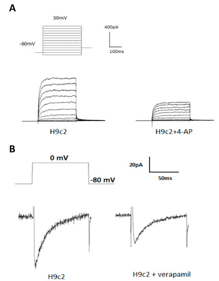 2.2. Delayed-Rectifier Potassium Outward Currents (IK) and L-Type Calcium Channel Current (ICa,L) in H9c2 Cells