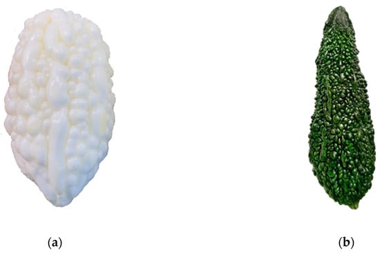 Bitter gourds used in this study. (a) Momordica charantia L., (b) Momordica charantia L. var. abbreviata Ser.