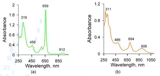 - Makarov, D.A.; Derkacheva, V.M.; Kuznetsova, N.A.; Kaliya, O.L.; Lukyanets, E.A. Octa-3,6-hexoxyphthalocyanines: Effect of Protonation on Spectral and Photochemical Properties. Macroheterocycles 2013, 6, 371–378. [Google Scholar] [CrossRef]