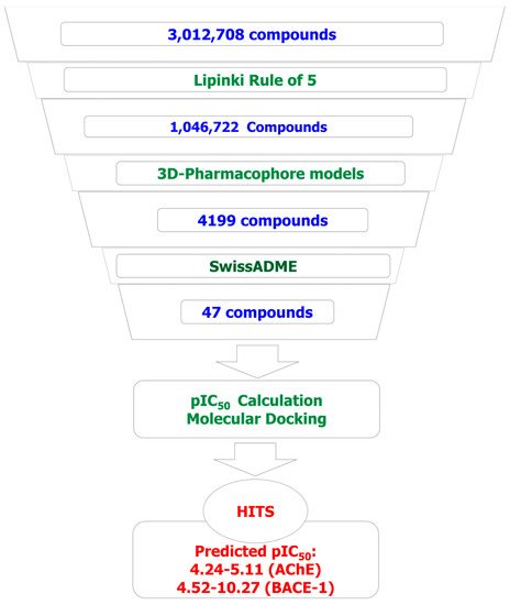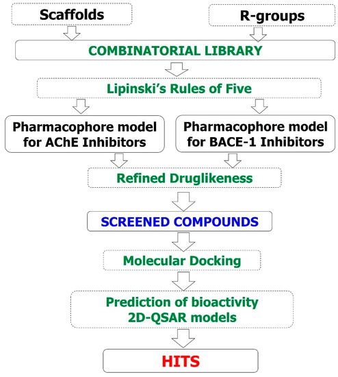 - John, S.; Thangapandian, S.; Sakkiah, S.; Lee, K.W. Potent BACE−1 inhibitor design using pharmacophore modeling, in silico screening and molecular docking studies. BMC Bioinform. 2011, 12, S28. [Google Scholar] [CrossRef]