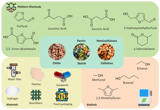 1.1. Polysaccharides in Lignocellulosic Materials and Food Wastes