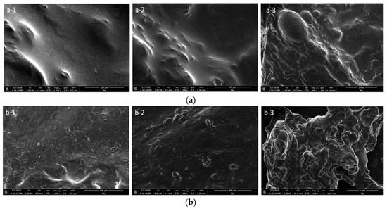 An important aspect in the processing of cellulose in ILs is its regeneration from the liquid media. Cellulose regeneration from ILs is generally performed by adding water or other anti-solvents, causing consecutive gelation and particle formation phenomena followed by the precipitation of cellulose. The IL is then removed by filtration and further washing of cellulose with water [150]. Water is a protic solvent with a moderate value of the Kamlet–Taft parameter β (0.47) and a high value of parameter π (1.17); thus, it can interact with the hydrogen bond-accepting IL anions [184]. Zavrel et al. [168] described this process in further detail. The IL ions are dispersed in the aqueous phase by hydrogen bonding, dipolar or Coulombic forces, and water molecules form hydrodynamic shells around the IL ions, disrupting the interactions established with cellulose. The inter- and intramolecular bonds between cellulose chains are then rebuilt, enabling the polysaccharide to precipitate [168]. In this regeneration process, cellulose can be converted from cellulose I into the more stable polymorph, cellulose II. At the same time, a decrease in crystallinity can also be observed. This behavior is mainly associated with the higher freedom of movement of cellulose chains after being dissolved and regenerated. In case of cellulose regeneration after whole biomass dissolution in ILs, the disruption of cellulose interactions with other biomass components also affects the structural conformation of isolated cellulose [101]. The visual depiction of cellulose fibers after dissolution and regeneration can be found in Figure 6, which shows the complete disruption of cellulose’s fibrillar structure.