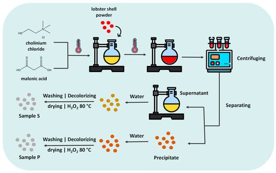 - Zhu, P.; Gu, Z.; Hong, S.; Lian, H. One-pot production of chitin with high purity from lobster shells using choline chloride–malonic acid deep eutectic solvent. Carbohydr. Polym. 2017, 177, 217–223. [Google Scholar] [CrossRef]