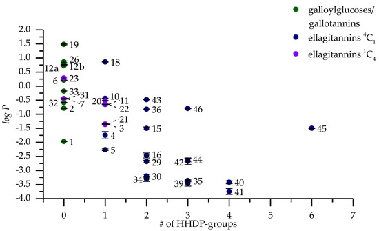 Virtanen, V.; Karonen, M. Partition Coefficients (logP) of Hydrolysable Tannins. Molecules 2020, 25, 3691. https://doi.org/10.3390/molecules25163691