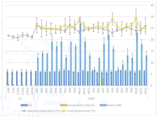 Results of physical parameters of CE and HVED treatment are given Figure 2, including pH, conductivity, power and temperature before and after the HVED treatment.