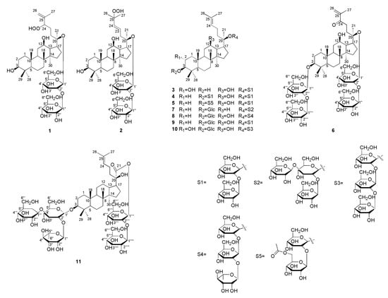 Chemical structures of compounds 1–11.