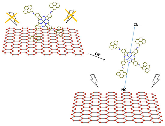 Scheme of the CN− sensing mechanism by supramolecular assembly GQDs-CoPc proposed in the Ref [57].