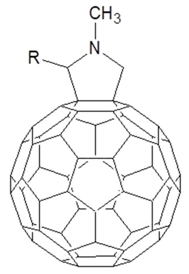 Moreover, the highest number of contributions about the formation of supramolecular aggregates of phthalocyanines and C60 derivatives is related to the use of the well-known fulleropyrrolidines [88]. In Figure 12, C60 fulleropyrrolidine chemical structure is reported.