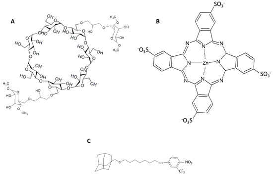 - Kandoth, N.; Vittorino, E.; Sciortino, M.T.; Parisi, T.; Colao, I.; Mazzaglia, A.; Sortino, S. A Cyclodextrin-Based Nanoassembly with Bimodal Photodynamic Action. Chem. A Eur. J. 2011, 18, 1684–1690. [Google Scholar] [CrossRef]