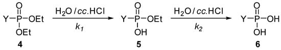 The two-step hydrolysis of other phosphonate derivatives. For the Y substituents see Table 2.