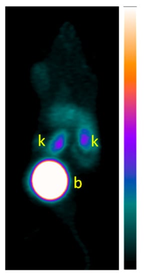 The use of low molecular weight radiolabeled peptides and antibody fragments for applications in oncology is rapidly gaining momentum [1,2,3,4,5]. Such a site-directed radiation delivery involves targeting of certain specific receptors overexpressed on the surface of cancer cells for the purpose of targeted imaging and radionuclide therapy [6]. While these oncophilic molecules serve as biological targeting vectors, they commonly exhibit very high and sustained renal uptake [7]. This is caused by either a high renal expression of cancer markers targeted by these oncophilic molecules, megalin-cubilin mediated endocytosis and transcellular transport, or lysosomal proteolysis following glomerular filtration and renal reabsorption [7,8,9]. This reduces detection sensitivity for lesions adjacent to kidneys and lowers the maximum tolerated dose for radiotherapy.