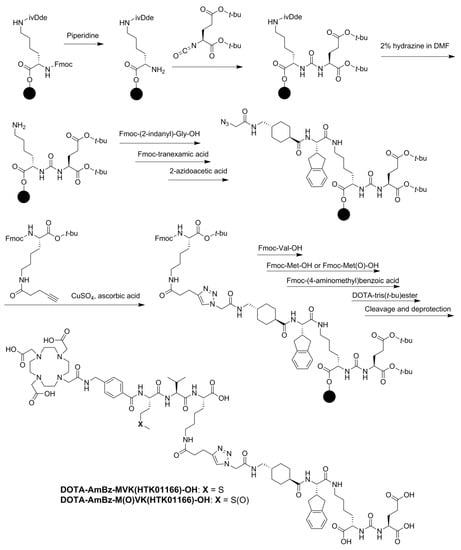 4.3.3. Synthesis of DOTA-AmBz-M(O)VK(HTK01166)-OH