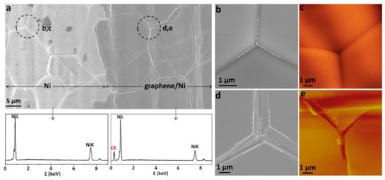 The controlled sublimation of SiC was an early method developed for graphene films in the electronics industry. Utilising this method, epitaxial graphene is achieved by thermal decomposition of a SiC substrate, using either e-beam or resistive heating. The process is conducted in an ultrahigh vacuum (UHV) to minimise contamination [8]. After the Si desorption has occurred, excess carbon on the surface of the SiC wafer rearranges to form a hexagonal lattice [9,10,11,12]. The main disadvantages of this method are its high cost, and it requires large amounts of Si for large-scale production.