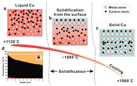 Recently, another interesting study was conducted by Chen et al. for the first time to encapsulate Cu particles by few layer graphene grown via cold wall CVD [92]. The synthesis of graphene-encapsulated Cu nanoparticles (GCPs) in their work was inspired by the core–shell structure in order to replace Ag as a functional filler in polymer composites. The obtained GCPs exhibited high thermal stability (~179 °C), while the excellent thermal conductivity of graphene as well as its oxidation resistance nature enabled its use in thermally conductive adhesive (TCA). The GCPs in TCA showed a remarkable enhancement in performance by 74.6% compared to Ag, which is the conventionally used functional filler in TCA.
