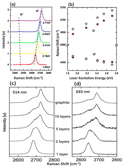 - Ferrari, A.C.; Meyer, J.C.; Scardaci, V.; Casiraghi, C.; Lazzeri, M.; Mauri, F.; Piscanec, S.; Jiang, D.; Novoselov, K.S.; Roth, S.; et al. Raman spectrum of graphene and graphene layers. Phys. Rev. Lett. 2006, 97. [Google Scholar] [CrossRef]