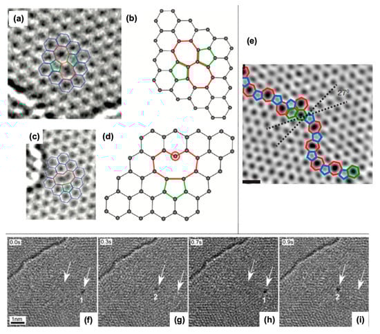 - Banhart, F.; Kotakoski, J.; Krasheninnikov, A.V. Structural defects in graphene. ACS Nano 2011, 5, 26–41. [Google Scholar] [CrossRef]