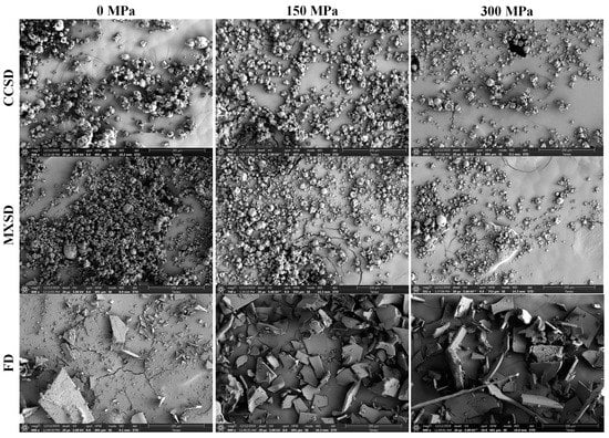 The morphology of the probiotic powders was assessed by scanning electron microscopy (SEM) (Figure 4). LP powders produced via CCSD and MXSD had semispherical shapes, rough surfaces, small fissures, and shrinkage thereby suggesting a low permeability to gases and improved protection of probiotic cells [].