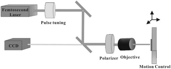 Laser machining of the LiNbO3 and LiTaO3 substrates was carried out using a femtosecond laser micromachining facility (OptoFab, Australian National Fabrication Facility), which incorporates an infrared femtosecond pulsed laser (Spectra Physics Hurricane, Spectra Physics, Myrtle Bank, SA, Australia), 3D motion control stages (Aerotech, Inc, Pittsburgh, PA, USA) and diagnostic and alignment tools to create an integrated and completely automated experimental setup for fabricating optical devices. The experimental setup for laser machining is shown in Figure 14.