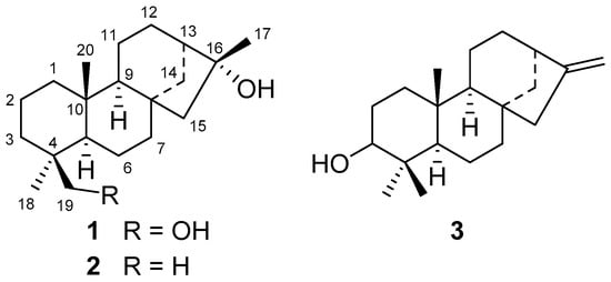 Sample Availability: Samples of the compounds phyllocladan-16α,19-diol (1), phyllocladan-16α-ol (2), and phylloclad-16-en-3-ol (3) are available from the authors. |