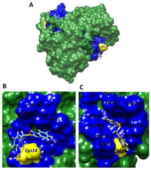- Pettersen, E.F.; Goddard, T.D.; Huang, C.C.; Couch, G.S.; Greenblatt, D.M.; Meng, E.C.; Ferrin, T.E. UCSF Chimera—A visualization system for exploratory research and analysis. J. Comput. Chem. 2004, 25, 1605–1612. [Google Scholar] [CrossRef]