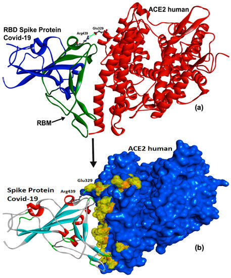 - Othman, H.; Bouslama, Z.; Brandenburg, J.-T.; Da Rocha, J.; Hamdi, Y.; Ghedira, K.; Abid, N.-S.; Hazelhurst, S. In silico study of the spike protein from SARS-CoV-2 interaction with ACE2: Similarity with SARS-CoV, hot-spot analysis and effect of the receptor polymorphism. BioRxiv 2020, 527, 702–708. [Google Scholar] [CrossRef]