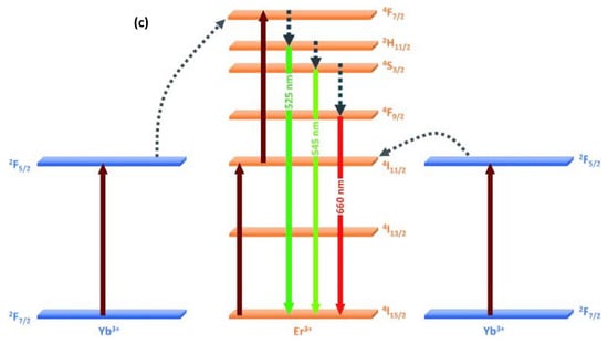 - Zhang, W.; Yang, S.; Li, J.; Gao, W.; Deng, Y.; Dong, W.; Zhao, C.; Lu, G. Visible-to-ultraviolet upconverstion: Energy transfer, materials matrix, and synthesis strategies. Appl. Catal. B 2017, 206, 89–103. [Google Scholar] [CrossRef]
