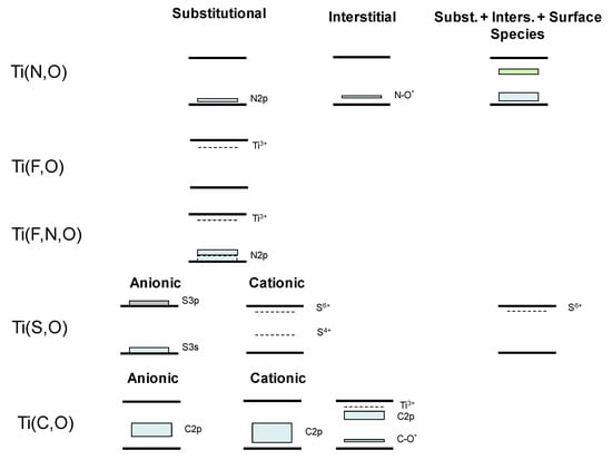 - Stewart, S.J.; Fernández-García, M.; Belver, C.; Simon Mun, B.; Requejo, F.G. Influence of N-Doping on the Structure and Electronic Properties of Titania Nanoparticle Photocatalysts. J. Phys. Chem. B 2006, 110, 16482–16486. [Google Scholar] [CrossRef]