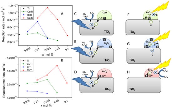 - Muñoz-Batista, M.J.; Kubacka, A.; Fernández-García, M. Effective Enhancement of TiO2 Photocatalysis by Synergistic Interaction of Surface Species: From Promoters to Co-catalysts. ACS Catal. 2014, 4, 4277–4288. [Google Scholar] [CrossRef]