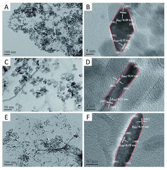 - Chen, C.; Rong, H.; Kaiguang, M.; Zhimin, R.; Wang, H.; Qian, G.; Wang, Z. Shape evolution of highly crystalline anatase TiO2 nanobipyramids. Crys. Growth Design 2011, 11, 5221–5226. [Google Scholar] [CrossRef]