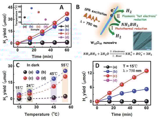 - Zhang, Z.; Jiang, X.; Liu, B.; Guo, L.; Lu, N.; Wang, L.; Huang, J.; Liu, K.; Dong, B. IR-driven untrafast transfer of plasmonic hot electrons in nonmetallic branched heterostructures for enhanced H2 generation. Adv. Mater. 2018, 30, 1705221. [Google Scholar] [CrossRef]