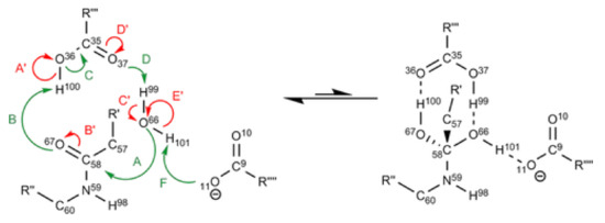 - Thacker, J.C.R.; Vincent, M.A.; Popelier, P.L.A. Using the Relative Energy Gradient Method with Interacting Quantum Atoms to Determine the Reaction Mechanism and Catalytic Effects in the Peptide Hydrolysis in HIV-1 Protease. Chem. Eur. J. 2018, 24, 11200–11210. [Google Scholar] [CrossRef]