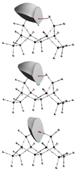 - Dillen, J. Congested molecules. Where is the steric repulsion? An analysis of the electron density by the method of interacting quantum atoms. Int. J. Quantum Chem. 2013, 113, 2143–2153. [Google Scholar] [CrossRef]