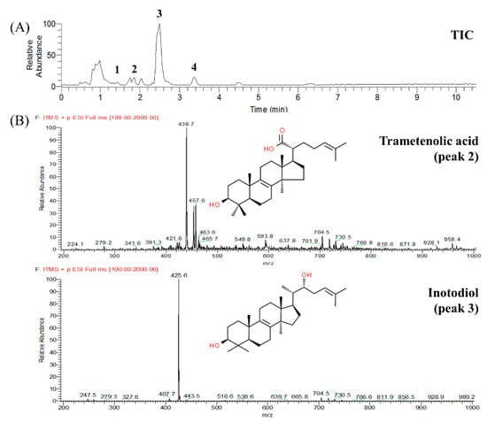 2.3. Composition of Triterpenoids in I. obliquus