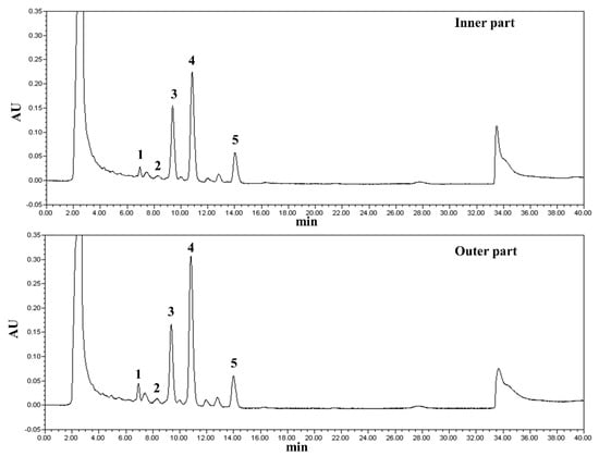 3.5. Analysis of Triterpenoid Composition