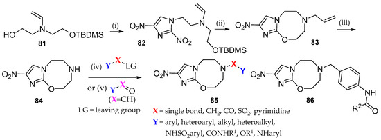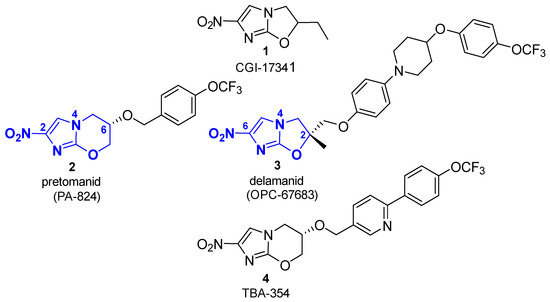 - Mukherjee, T.; Boshoff, H. Nitroimidazoles for the treatment of TB: Past, present and future. Future Med. Chem. 2011, 3, 1427–1454. [Google Scholar] [CrossRef]